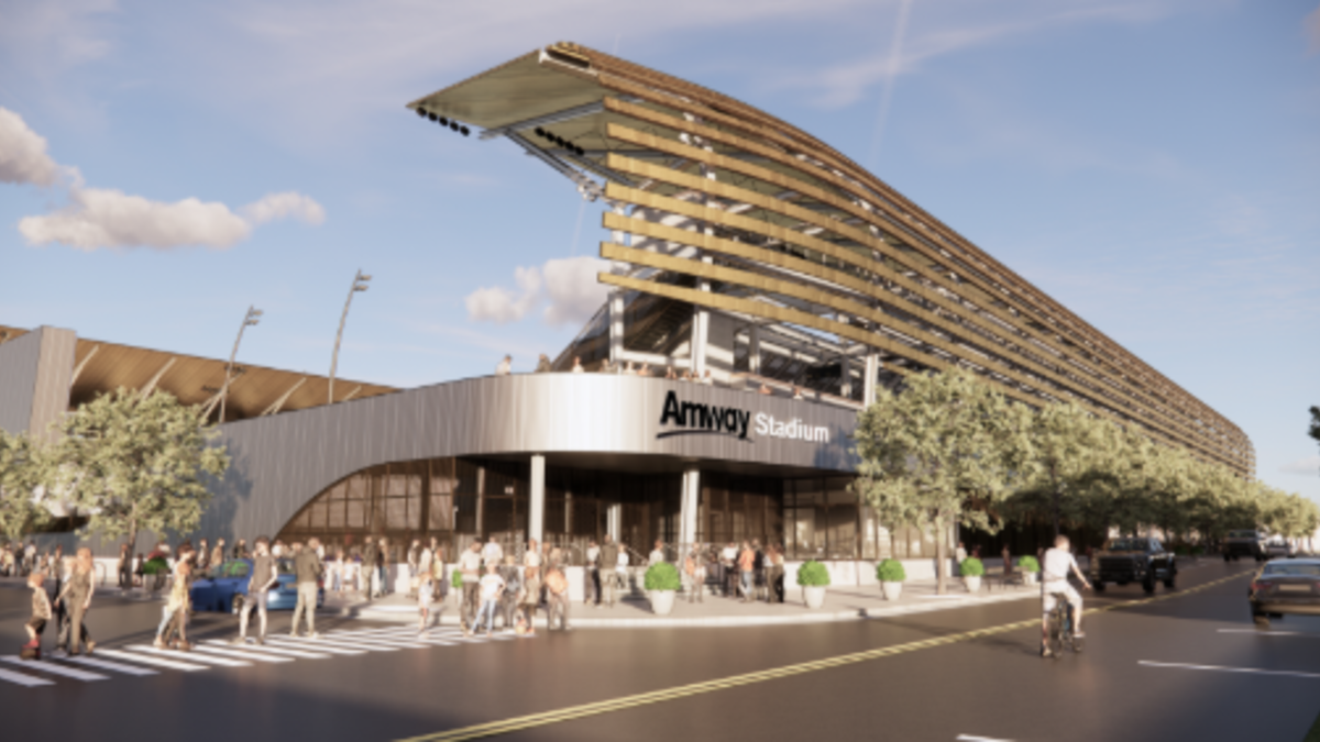The groundbreaking ceremony for the Amway Stadium will take place on Tuesday and will begin at 2 p.m.